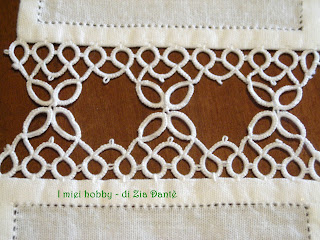 Questa sera voglio pubblicare un centro per il comò e comodini che ho realizzato con intarsi a chiacchierino e l'ho regalato un paio di anni fa a mia nipote Claudia in occasione del suo compleanno